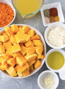 • 2 lbs. butternut squash cut in 1-inch pieces, about 5 cups