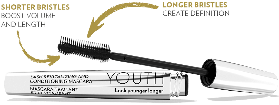 YOUTH Lash Revitalizing & Conditioning Mascara is a 2-in-1 lash conditioner and mascara that lengthens, volumizes and lifts to help create fuller looking lashes. Specially formulated with our Botanical Complex and Lash Protection Complex, this product also helps strengthen lashes and defend against environmental damage. The innovative 2-sided brush enables you to create volume with shorter bristles and add definition with longer bristles.