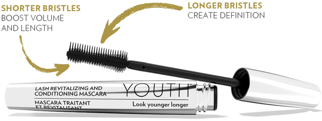 YOUTH Lash Revitalizing & Conditioning Mascara is a 2-in-1 lash conditioner and mascara that lengthens, volumizes and lifts to help create fuller looking lashes. Specially formulated with our Botanical Complex and Lash Protection Complex, this product also helps strengthen lashes and defend against environmental damage. The innovative 2-sided brush enables you to create volume with shorter bristles and add definition with longer bristles.